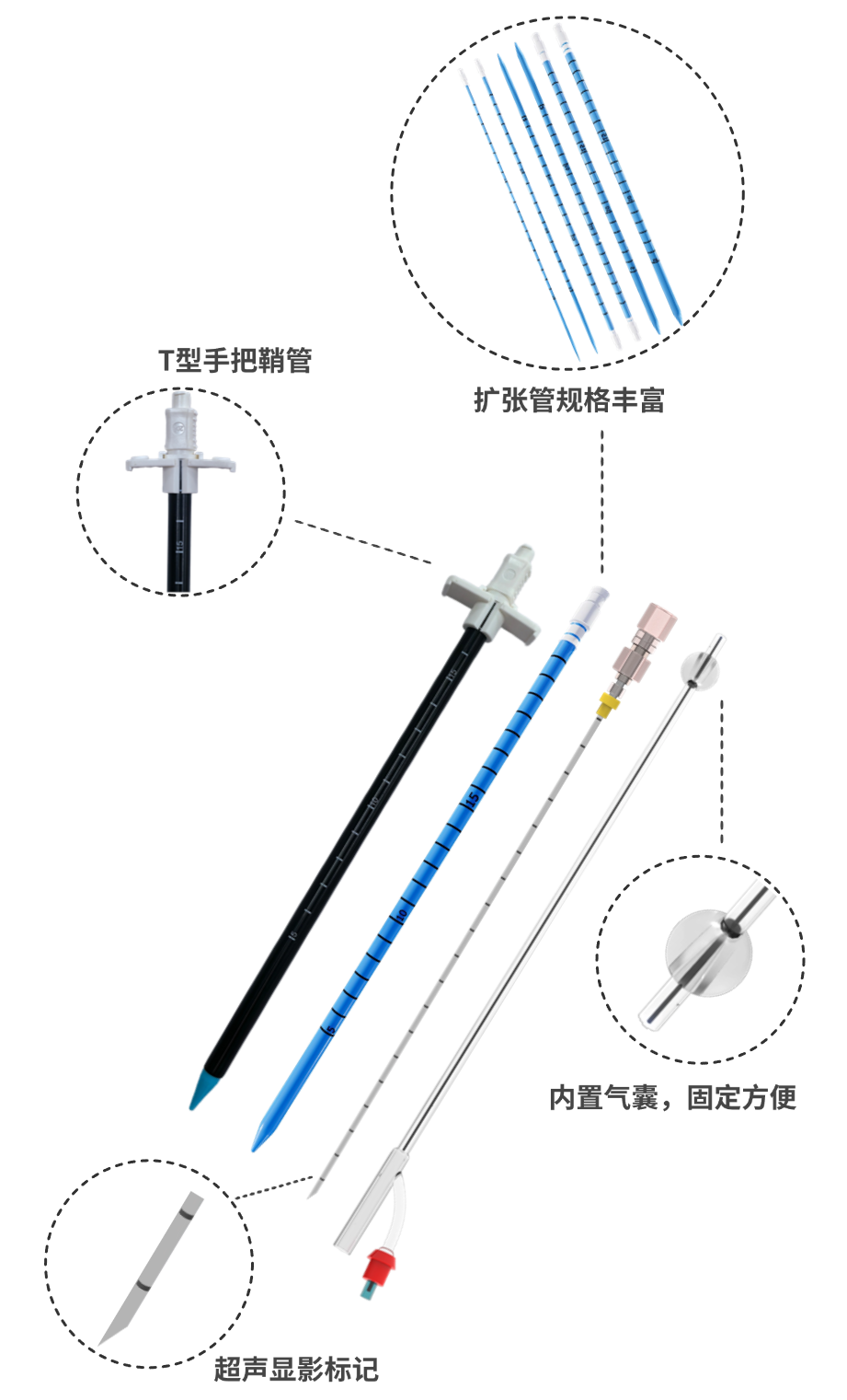 扩张管尖端一体顺滑型设计,在扩张时能提供最大扩张力;